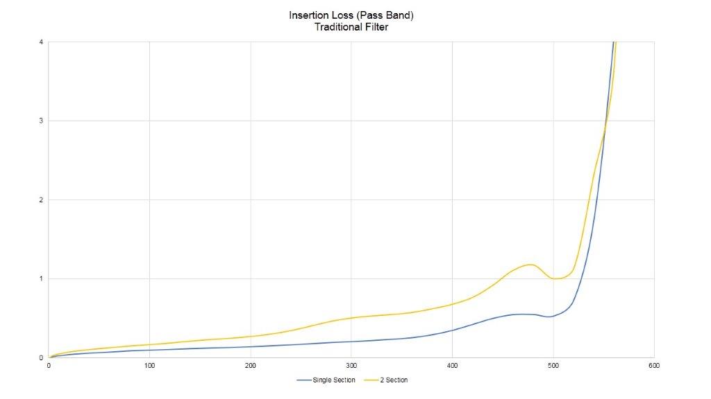- איור 2. נתוני הדמיה עבור הפסדי מעבר: מסנן יחיד לעומת שני מסננים בטור
