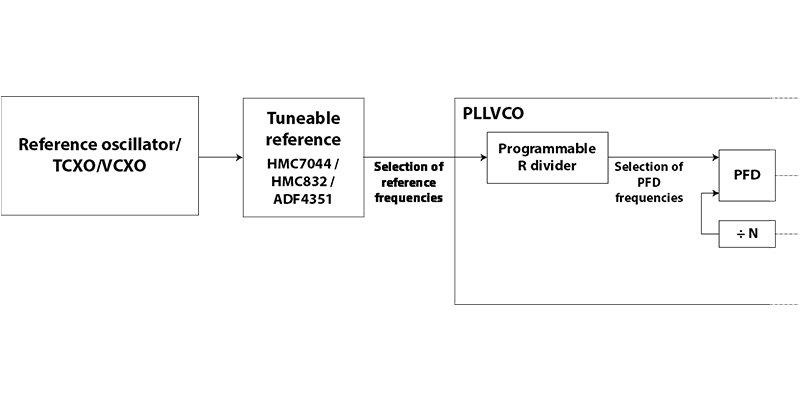 אם כי ל-ADF5355 יש PLL פנימי, ה-HMC704 שימש לנעילה החיצונית של ה-VCO ADF5355. ישנם שני יתרונות עיקריים לטכניקה זו: