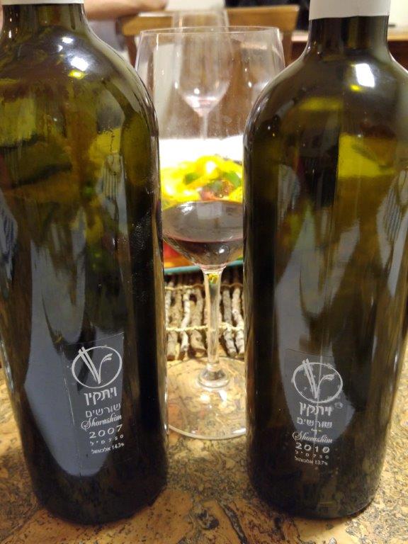 “ב-2006 עשינו את השורשים הראשון, ב-2007/8 עשינו גם שורשים. ב-2009 החלטנו לדלג ואז הגיע 2010. הבלנד מורכב משלושה שלישים, כשכל שליש מייצג קצת את הדרך שלנו. שני השליש הראשונים אלה הם הקריניאן ופטיט סירה מכרמים בוגרים. השליש השלישי הוא השליש המודרני, בעצם הזנים החדשים שהגיעו לכאן: מחציתו סירה ומחציתו פטיט ורדו מכרם צעיר יחסית שניטע ב-2006 בגליל העליון. יבולים נמוכים, פרי מרוכז ויש גם אחוזים בודדים של קלומבר שהוא זן לבן שהתססנו ביחד עם הקרניאן. הכרם מאחר בהבשלה שלו. זה כרם בן 30 שנה בגיל וביקשנו להשאיר בו מספר כרמים של קולמבר. יש הרבה מאוד מחקרים שאומרים שהפיגמנטים הצהובים של הענבים הלבנים מתחברים עם הפיגמנטים השחורים של הענבים האדומים ויוצרים צבע מאוד יציב שלא שוקע. ההחלטה אם אנחנו עושים שורשים או לא, מתבצע שנה אחרי הבציר אחרי שאנחנו בודקים את הבלנדים הגבוהים. ואם היין החביות באמת ראוי להכנס לשורשים. חלק מהאובססיה שלי ביינות זה לקרר יינות אדומים, לרוב היינות האדומים זה עושה מאוד טוב וגם כאן. יש את השילוב והעוצמה של סמיכות והרבה רעננות ואלגנטיות שרק תלך ותתפתח עם השנים. זה בהחלט יין ליישון”. “בויתקין אחד הקוים שבחרנו לעיצוב היין האדום זה עץ מאוד מאופק. רוב היינות לא עוברים את השנה וחצי בחביות, לרוב זה 10 חודשים, שנה ושנה ורבע. בשורשים היינו קצת יותר אמיצים אבל הרגשנו שהיין צריך את זה, אז הוא שהה שנתיים בחבית. השתמשנו בחביות שהעץ יותר צפוף והן משמשות ליישון יותר ארוך של היינות. מאה אחוז עץ חדש. מרגישים את הפרי, את הפרחוניות ועשבי תיבול וכל המאפיינים שאנחנו רוצים ביין. במזיגת שורשים 2007 אנחנו רוצים להראות מה השנים עושים ליין הזה. איזה אופק יש לו. יין בציר 2010 מתנהג לדעתי קצת יותר סגור מ-2007. זמן התבגרות בחביות פחות או יותר אותו הדבר והיינו נאמנים לייצרן חביות וורנו. ב-2010 כל הריחות דחוסים למשהו מאוד קטן, דחוס ועשיר בעיקר בפה ופחות באף. ביין 2007 המניפה נפתחת וכבר אפשר להרגיש את כל הריחות יש בו את כל הארומות, ההתיישנות של היין בבקבוק”. כך סיים אסף פז, היינן של יקב ויתקין את הסבריו ותאוריו הרבים בערב מעניין וטעים.