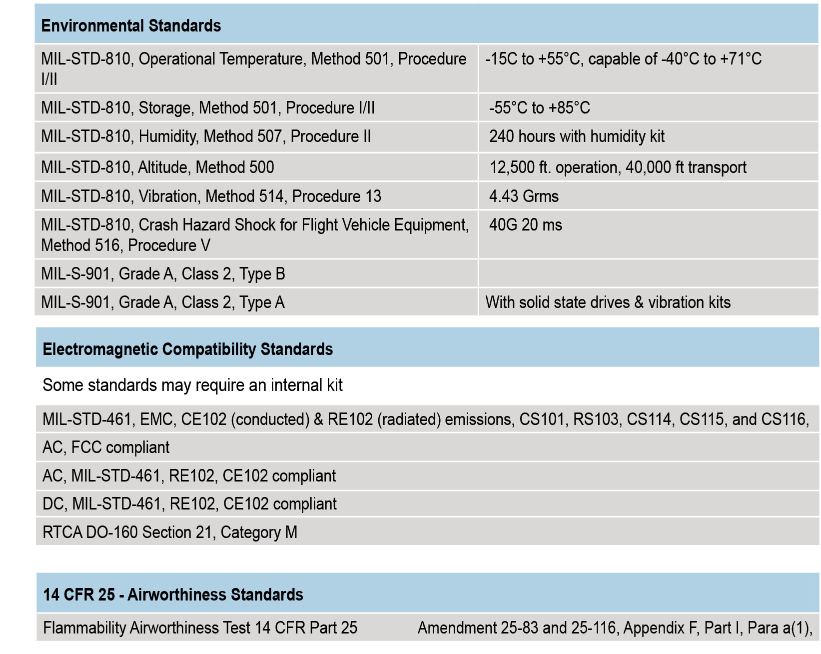 המערכת עברה אישורים לתקנים של הקשחה Rugged 2U Server MIL-STD-810, MIL-STD-461, FCC class A certification