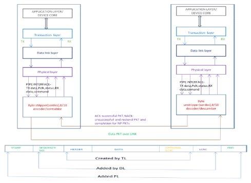 1. הפונקציונליות בין רובד היישומים (ליבת המערכת/מעבד והרגיסטרים החיצוניים) וה-IP של ה-PCIe: ככלל, רובד היישומים מוטמע ב-SoC באופן חיצוני ל-IP של ה-PCIe שמספק צוות ה-IP. עלינו לאמת את המאפיינים הנשלטים על-ידי הרגיסטרים ברובד היישומים ואת ה-glue logics. אלה עשויים להצריך החלפה של סוג ההתקן (מ-Root Complex ל-End Point וההיפך); חלק מהמאפיינים של PHY כגון de-emphasis, תנודות מתח; סיביות סטטוס המגיעות מה-PCIe כגון סטטוס החיבור, המצב הנוכחי של ה-LTSSM וכו’.