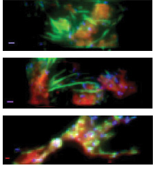 8 פורסם ע"י New-Tech Magazine on דצמבר 30, 2015 228 × 247מיקרוסקופ TIRF מרובה-צבעים כינון תוך שימוש ב-iChrome עבור ניסויי FRET ו-TIRF איור 8. תאי HEK-293 מוכתמים במיקרוסקופיית TIRF. העירור מרובה-הצבעים מאפשר הבחנה של ה-actin (ירוק), prestin (כחול) והגרעין (אדום) ברקע המרוחק (קו קנה-המידה: 1 מיקרומטר). ← קודם הבא →