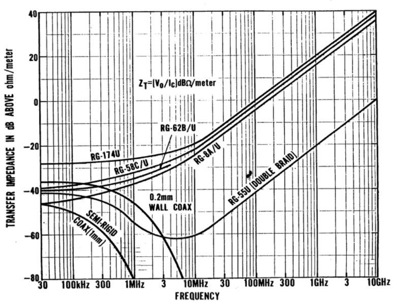 של כבל אימפדנס המעבר הינו ספרת טיב לאיכות הסיכוך של כבל. זהו היחס בין המתח המושרה בתוך הכבל (יחסי למתח הרעש על העומס) לבין הזרם המשטחי על פני השכבה החיצונית של הסיכוך. אימפדנס המעבר ויעילות הסיכוך מתייחסים הפוך זה לזה – ככל שאימפדנס המעבר (כתלות בתדר) קטן יותר, כך גדלה יעילות הסיכוך. בכבלים באיכות טובה אימפדנס המעבר הינו בסדר גודל של 10mΩ/m המתאים ליעילות סיכוך של 80dB איור 1 מבהיר את הגדרת ZT ואת הקשר בינו לבין צימוד ההפרעה משדה חיצוני על הכבל ( – Differential Mode Coupling). איור 2 מתאר את אימפדנס המעבר של סיכוכים שונים כתלות בתדר. מאיור 2 ניתן לראות לדוגמא, כבל בסיכוך כפול מספק בתחום תדרים 50kHz-100MHz