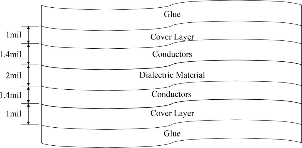 5. שכבת כיסוי r =3.3 תהיה בעובי רגיל של 1mil (ניתן לדרוש גם בעובי 2mil) בנוסף לחמש שכבות אלו קיימות גם שתי שכבות חיצוניות לא אחידות של דבק.