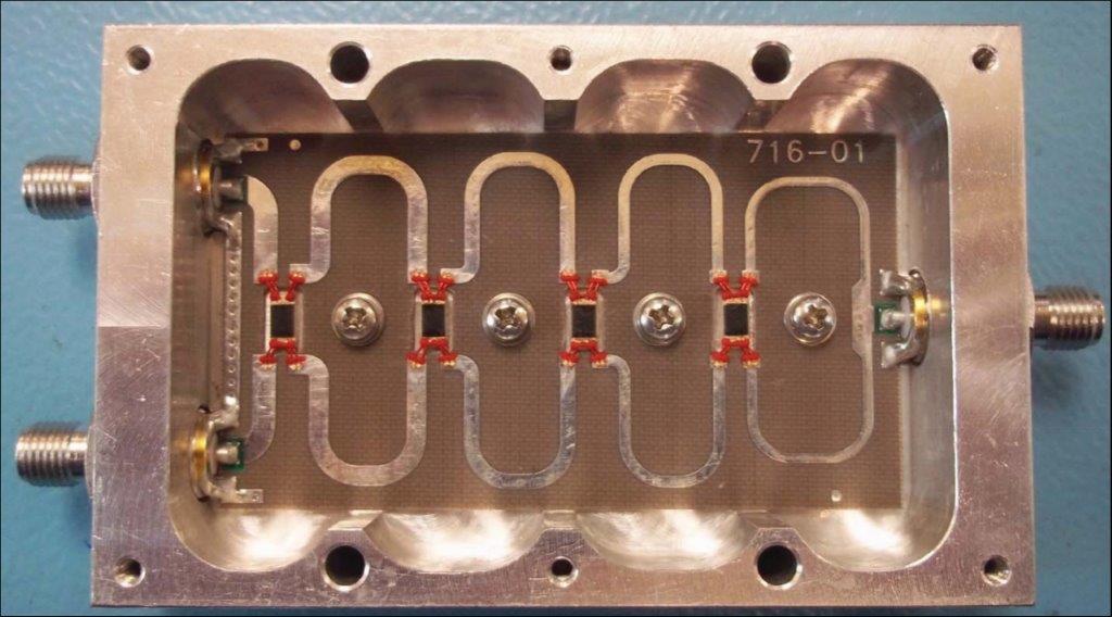 על מנת לתמוך בדרישות של הספק גבוה בתדירויות גבוהות יותר, יעד התכנון שהוגדר היה להרחיב את טווח התדירויות של +ZACS242-100W תוך כדי שמירה על הפסדי מעבר נמוכים וביצועים כוללים שווי ערך. אחת הדרכים להשיג את המטרה הזו הייתה יכולה להיות הקטנה של הקיבול הנובע מהנגדים. אנו יודעים שקיבול הוא פונקציה של שטח החפיפה בין המשטחים המוליכים הנמצאים בתחתית הנגד לבין המעגל המודפס. ראוי לשים לב שהנגדים באיור 1 מונחים כשהם פונים כלפי מטה, כאשר המשטח המוליך כולו פרוש אל מול המעגל המודפס. אמנם אין אנו יכולים להקטין את הגודל של הנגד או את השטח של המשטח המוליך עצמו, אך אנו יכולים להניח אחרת את הנגד מול המעגל המודפס, על מנת להקטין עד למינימום את השטח החופף שבין הלוחות המקבילים.