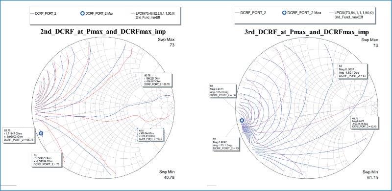 8 פורסם ע"י New-Tech Magazine on נובמבר 2, 2016 800 × 391סימולציה ככלי לתכנון מגבר הספק רחב סרט בטכנולוגית GaN איור 8. בצד שמאל – אופיין קו העמסה עבור תדר ההרמוניה השניה, עבור עכבת התדר היסודי, עבור הספק מירבי ו-drain efficiency האיזור המתאים נמצא מתחת לקו המשורטט. בצד ימין – כנ"ל עבור ההרמוניה השלישית ← קודם הבא →