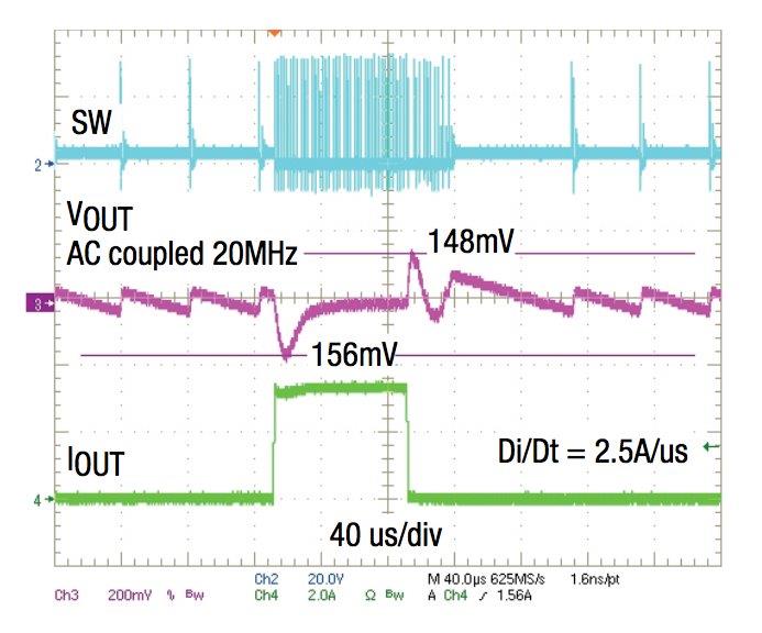 - איור 6. דגם XR79206 מבצע קפיצת עומס מ-A0.05 ל-A3 על-ידי מעבר חלק מ-DCM ל-CCM