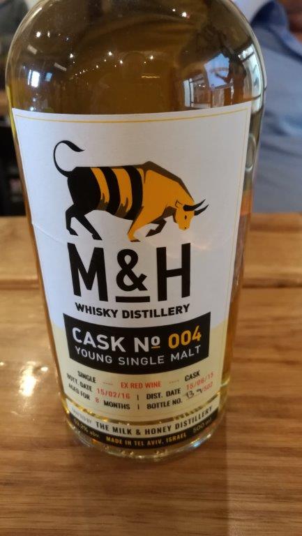 וויסקי מחבית מספר 4 שהיה בחבית בה היה לפני כן קברנה סוביניון, 8 חדשים. 52.3% אלכוהול. צבע צהבהב.