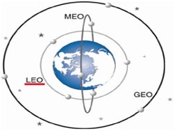LEO – מסלול לווייני נמוך (Low Earth Orbit) בגובה של 300-1500 ק”מ מעל פני כדור הארץ. מרבית הלוויינים המקיפים את כדה”א נמצאים במסלול זה. במסלול זה הלוויין יכול לשמש במגוון תחומים .