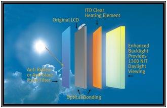 התערבות נוספת נדרשת כאשר המסך חייב לעבוד בתנאי קור של פחות מ-, למסכים אלו נדרשת הוספת שכבת ציפוי ITO.