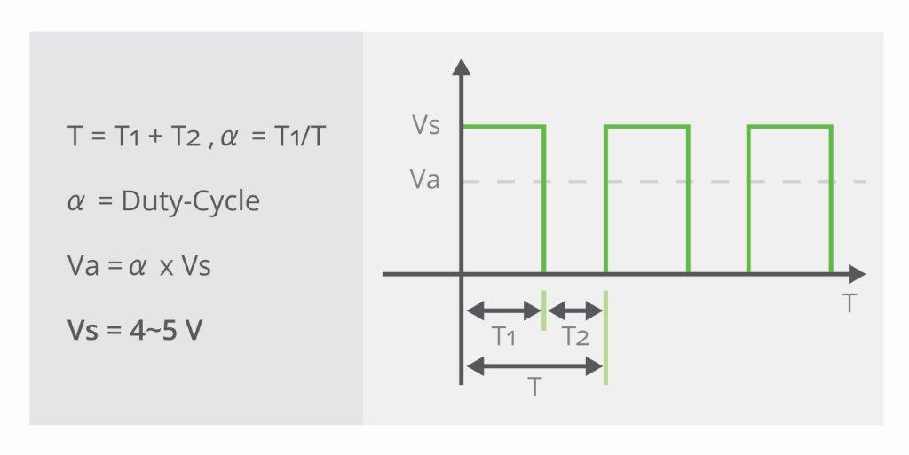 - איור 6. ניתן להשיג שינוי במהירות המאוורר על-ידי שינוי מחזור הפעולה של אות ה-PWM