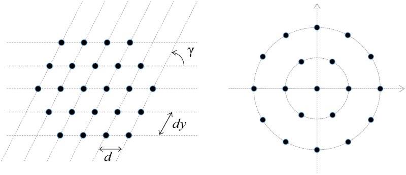 ניתן להשתמש בכל ערך חיובי של גמא על מנת להגדיר את ה-Lattice בעוד שהאופציה המעגלית מאפשרת שמוש בתצורת מערך -מופע עגול, חד מעגלי או בעל כמה מעגלים קונצנטריים. את מספר האלמנטים בכל אחד מהמעגלים הקונצרנטריים והרדיוס של כל מעגל אפשר להגדיר כווקטורים בעלי משתנים NC ו-R. דוגמא למסבך ולמערך מעגלי מודגמות באיור 4.