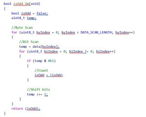 כדי לבצע את הגרסה המואצת ע”י חומרה, תחילה עליך ללכוד את הערך הנעול הנוכחי ב-CLC. לאחר מכן יש לשדר את הנתונים שצריך לחשב עבורם זוגיות כאשר ה-CS אינו מוצהר (deasserted). לאחר מכן, עיין בערך החדש הנעול ב-CLC. אם הערך החדש שווה לערך הקודם, זה אומר שנספר מספר זוגי של ‘אחד-ים’. אם הערכים אינם תואמים, זה היה מספר אי-זוגי. התוכנה לחישוב זוגיות אי-זוגית (odd parity) מוצג להלן.