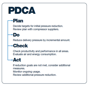 גישה תעשייתית מתקדמת היא מעבר ל bar4 לכלל תשתית האוויר במפעל, תוך התאמת הצרכנים והספקת הקווים בצורה מדורגת. ירידה של 1bar בלבד יכולה לחסוך מאות MWh בשנה במפעל גדול ולהפחית עשרות טונות. CO₂.