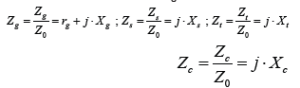 האימפדנסים המרכיבים את המעגל השקול מנורמלים ביחס ל ־ Z0.